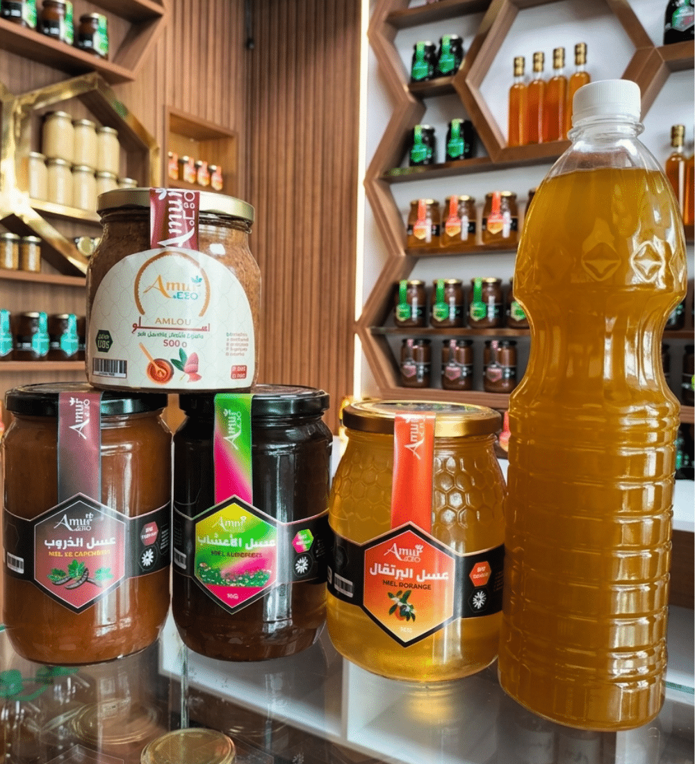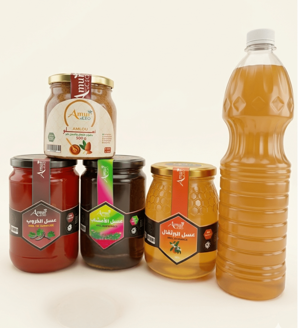 اكتشفوا كنوز الطبيعة المغربية الأصيلة مع تشكيلة مميزة من أجود أنواع العسل الطبيعي و”أملو” التقليدي، المصنوعة بعناية للحفاظ على النكهة الأصلية والقيمة الغذائية العالية.